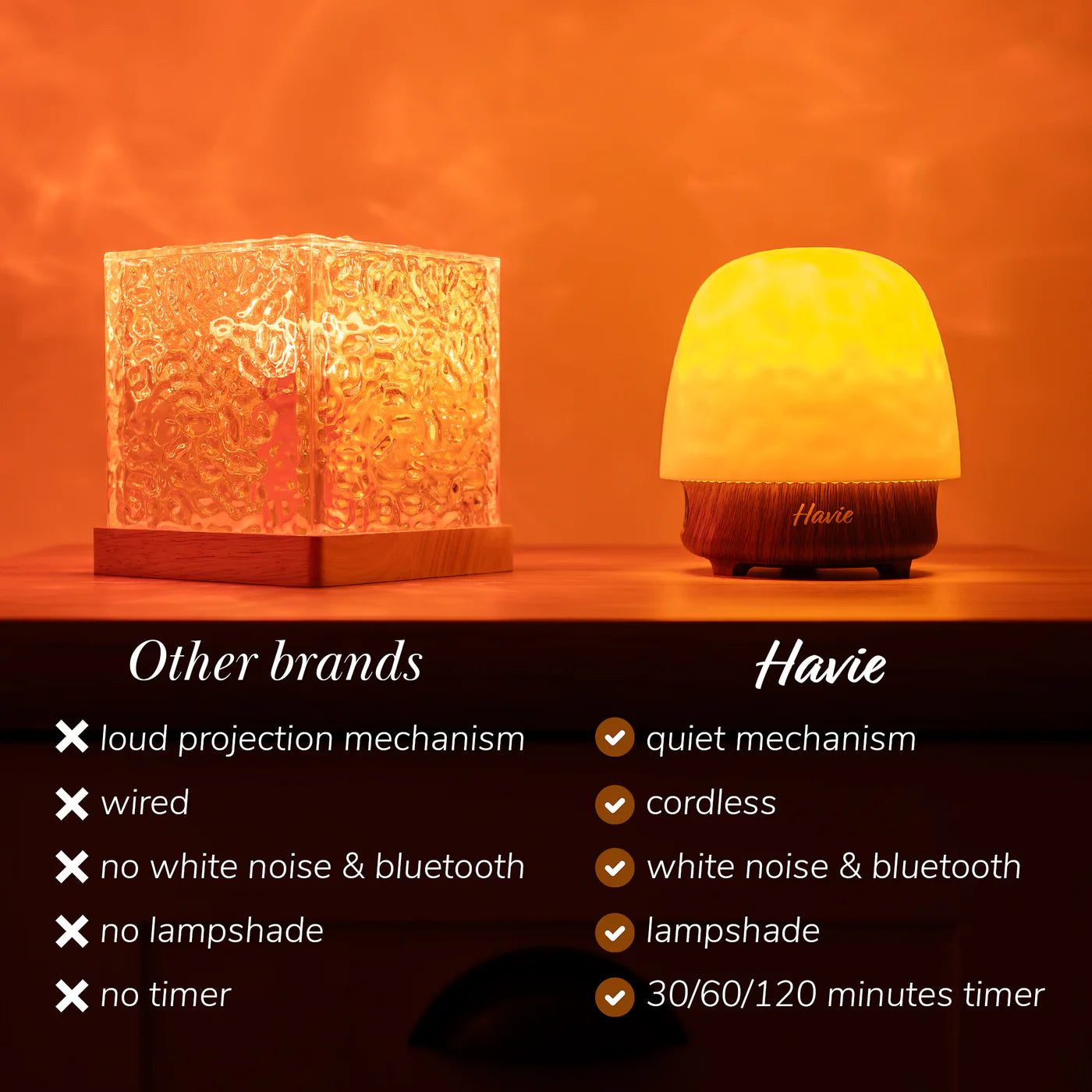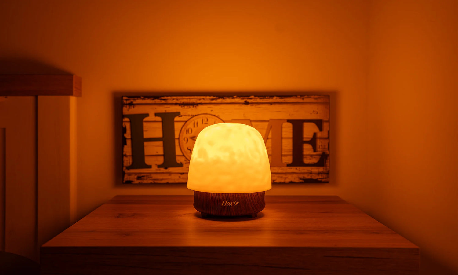 Unwind with Havie—your all-in-one sleep sanctuary. Set the mood with customizable colors and adjustable brightness, then drift into dreamland with soothing white noise. With a built-in Bluetooth speaker, red light mode, and auto-off timers (30/60/120 mins), Havie is more than a lamp—it’s your nightly reset button.